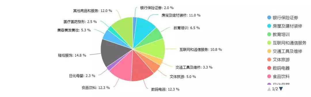 在調(diào)查的行業(yè)中,受訪者普遍反映消費侵權(quán)主要集中在鞋帽服飾、數(shù)碼電器、食品飲料、房屋及建材裝修、互聯(lián)網(wǎng)和通訊服務(wù)行業(yè),這些行業(yè)的消費維權(quán)數(shù)據(jù)均超過10%,而鞋帽服飾行業(yè)的侵權(quán)行為最為常見,比例高達14.8%。
