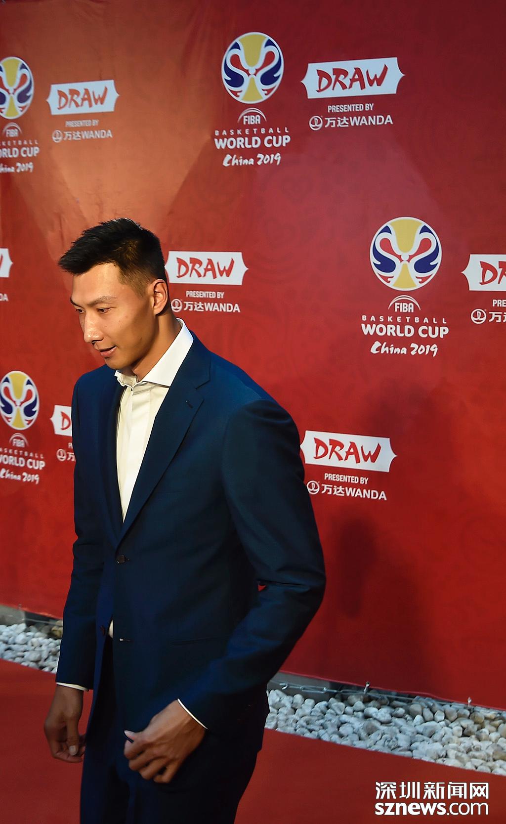 籃球明星易建聯(lián)在抽簽儀式亮相并接受采訪