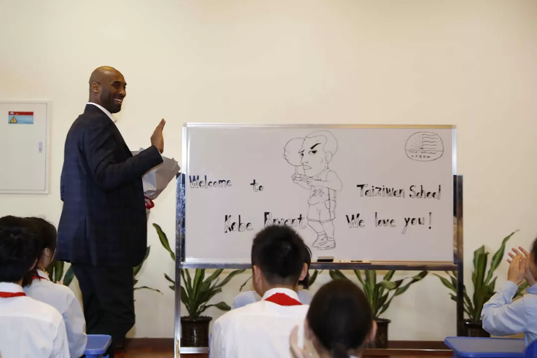 11點(diǎn)20分,科比在萬(wàn)眾期待中出現(xiàn),滿(mǎn)臉笑容地走下車(chē)接受太子灣學(xué)校學(xué)生的鮮花。