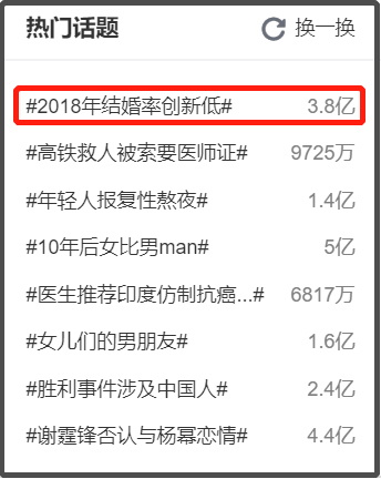 一個新話題 #2018年結(jié)婚率創(chuàng)新低 #