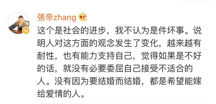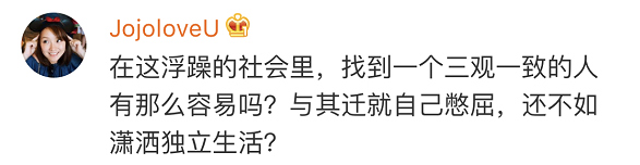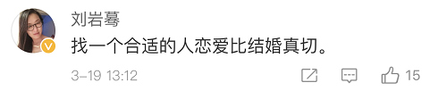以前想著是28歲結(jié)婚,現(xiàn)在已經(jīng)無所謂了。如果是和對的人結(jié)婚,在我心里婚姻排第一,主要還是因人而決定步入婚姻。對戀愛、結(jié)婚對象最主要的標準就是價值觀要吻合。
