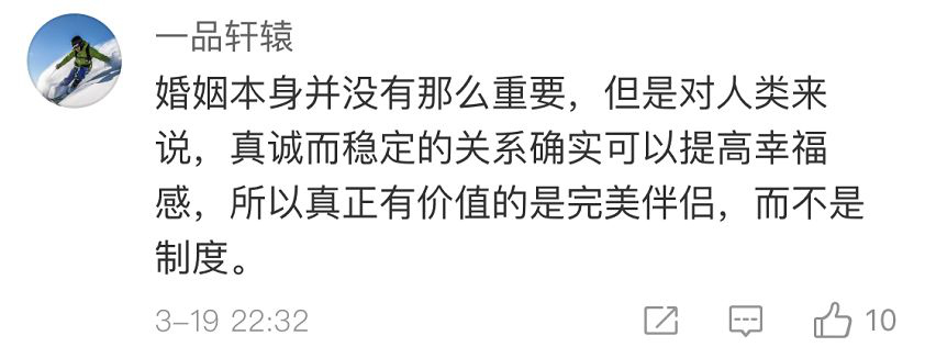 一定要遇到理想的結(jié)婚對象才會選擇結(jié)婚。事業(yè)排第一,婚姻排在最后。我進入婚姻的初衷是為了讓生活變得更好,而且婚姻更多還是一種合作關系,兩個人在一起能夠提高生活品質(zhì),經(jīng)濟方面相互幫助,降低生活成本,增強風險抵抗能力。身邊朋友未婚的比較多,但有時看到已婚的朋友生活幸福,會有短暫的焦慮感,但更多地受到父母不幸的婚姻生活的影響,我對婚姻基本沒有什么正面的期望。