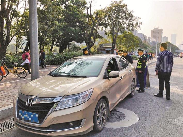 無(wú)證網(wǎng)約車被執(zhí)法人員攔截。