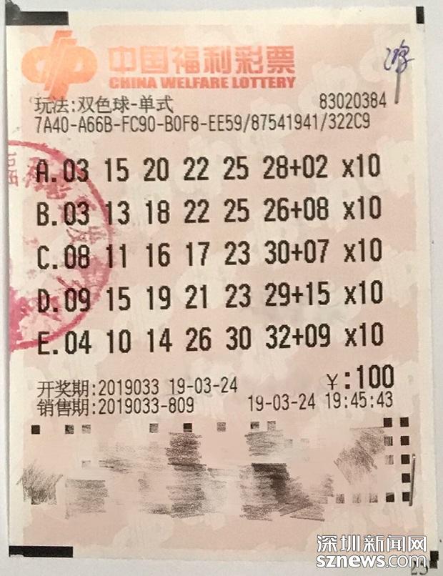 3月24日晚,中國福利彩票雙色球游戲進(jìn)行第2019033期開獎。當(dāng)期雙色球紅球號碼為09、15、19、21、23、29,藍(lán)球號碼為15。深圳彩民中出11注一等獎,中出的站點除了南山區(qū)粵海路飛馬城世界服裝貿(mào)易廣場c-130商鋪83020384投注站中出10注,還有1注是寶安區(qū)松崗街道平安路居樂苑10號83020476投注站中出。