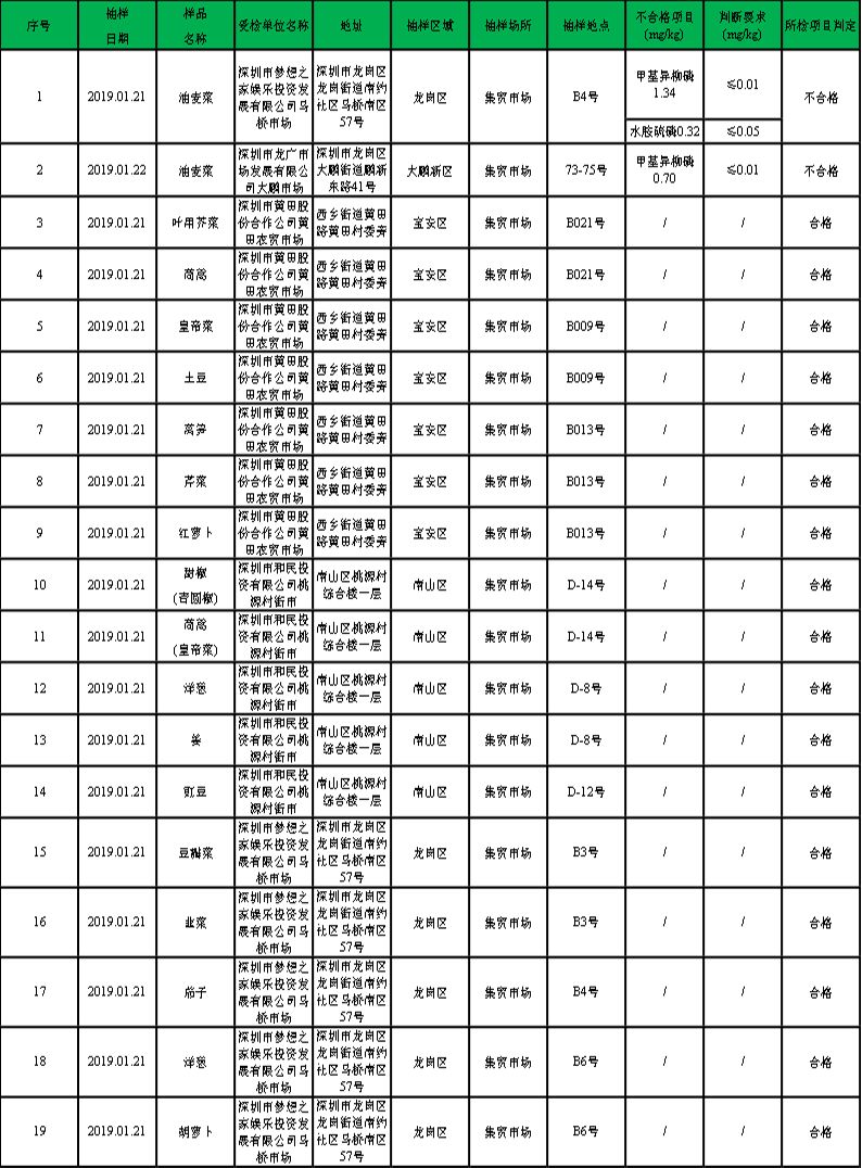 豬肉產(chǎn)品和蔬菜抽檢結(jié)果