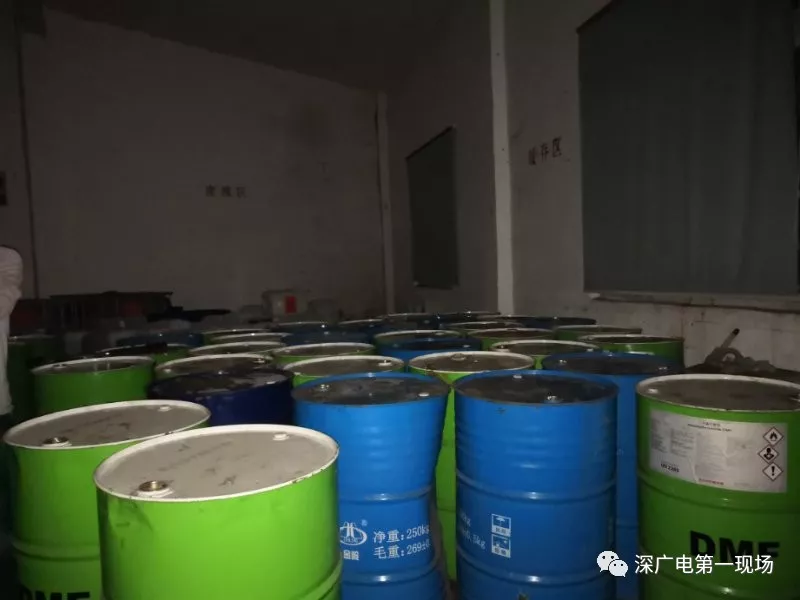 該倉庫內存放的N.N一二甲基甲酰胺、二氯甲烷和甲醇均屬于易燃易爆且有毒?;?非法存儲存在極大安全風險,執(zhí)法人員當場要求該公司將該批廢溶劑全部搬離。