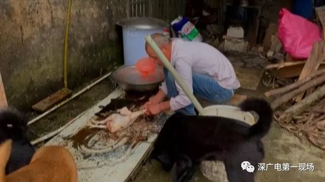 這名男子將活禽拿到了民房旁邊的一處宰殺點(diǎn),另外一名年長(zhǎng)一點(diǎn)的男子接過(guò)活雞就地宰殺。