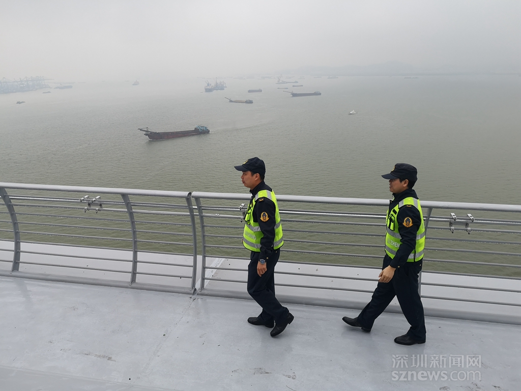 深圳新聞網(wǎng)記者齊釗遠(yuǎn)在橋面上調(diào)試無(wú)人機(jī),準(zhǔn)備航拍虎門二橋(現(xiàn)名南沙大橋)