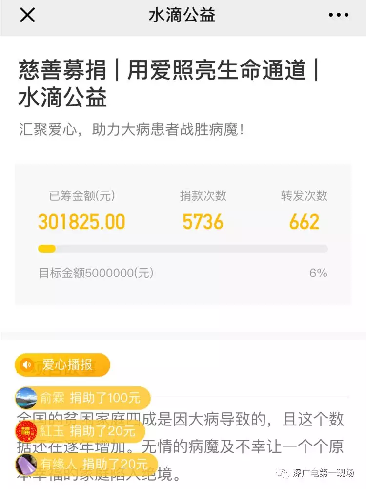 20元、50元、100元,平臺上善款籌集信息在愛心廣播上滾動著。截止4月2日晚上7點半,捐款次數超過了5736多次,轉發(fā)次數也達到了6百多,在大家一次次的愛心匯聚下,目前籌款已經超過了30萬元。
