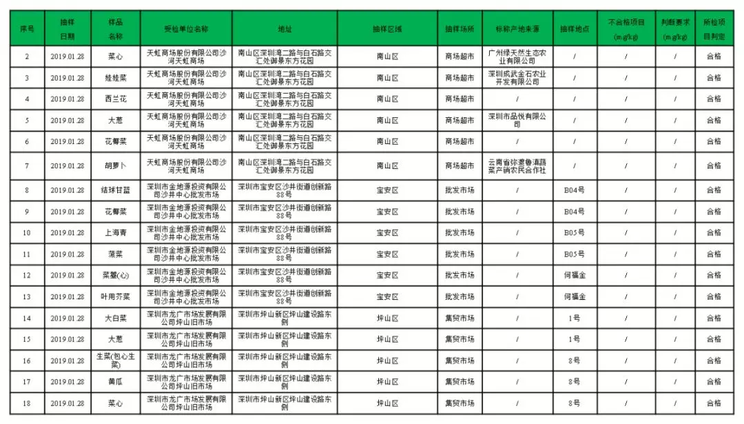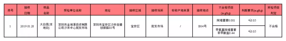 豬肉產(chǎn)品和蔬菜抽檢結(jié)果