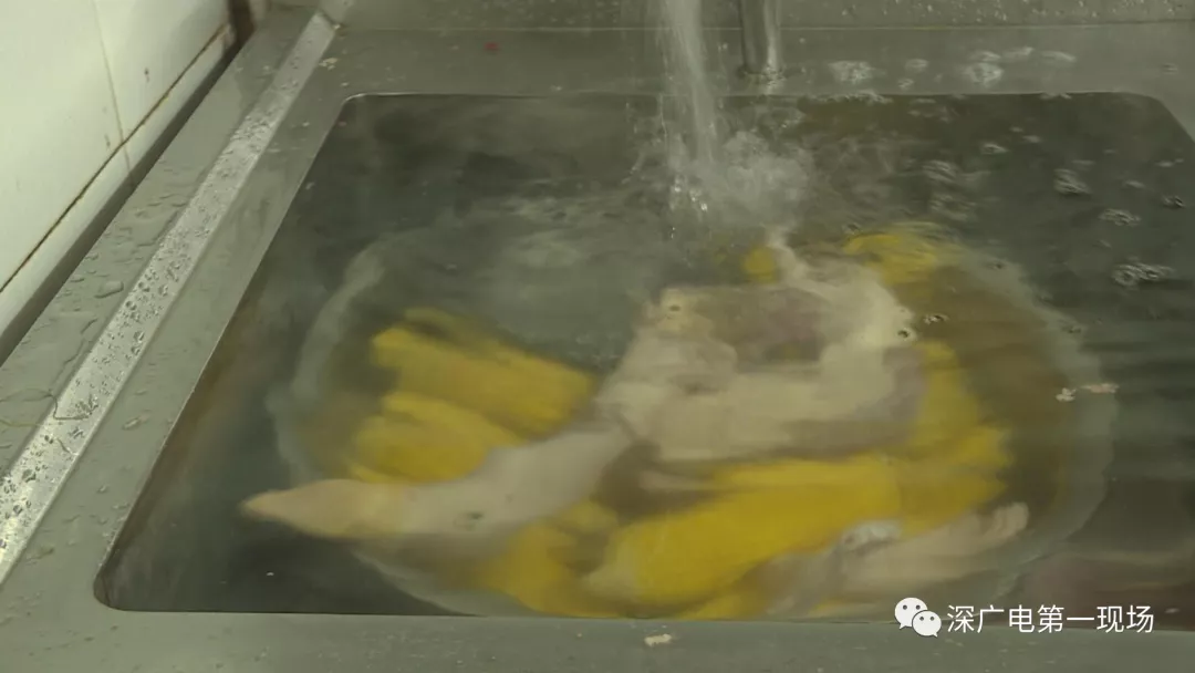 中午12點(diǎn),記者隨同市監(jiān)寶安局沙井所的執(zhí)法人員對(duì)這家蟹王子餐廳進(jìn)行突擊檢查。才剛進(jìn)后廚沒(méi)多久。執(zhí)法人員就發(fā)現(xiàn)。這做酸菜魚的酸菜。居然泡在了洗碗池!