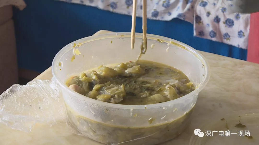劉女士把那晚沒(méi)吃完的酸菜魚放在了冰箱里,希望當(dāng)證物提供給執(zhí)法人員。記者看到這份酸菜魚里。除了魚和酸菜還有粉條等配料。