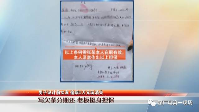 這張2019年2月28日立下的欠條上面寫(xiě)著,張某欠郭小姐6萬(wàn)元,欠款人張某每個(gè)月30號(hào)準(zhǔn)時(shí)還錢(qián),以工資的一半還。欠條上,留有張某及郭小姐兩人的簽字和身份證號(hào),張某還按了手印。而欠條中央有一行字“以上條例需張某本人在職有效,本人愿意作出以上擔(dān)保”。擔(dān)保人處簽名很潦草,郭小姐說(shuō),是張某的老板黃某某簽的。