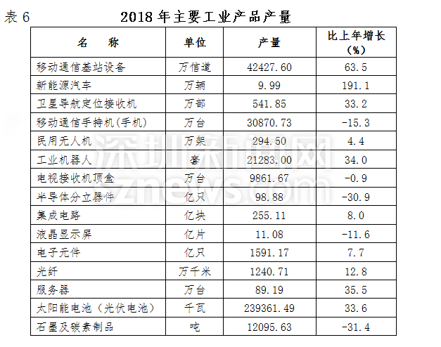 2018年,深圳全部工業(yè)增加值9254.00億元,比上年增長9.0%。規(guī)模以上工業(yè)增加值增長9.5%。在規(guī)模以上工業(yè)中,國有企業(yè)增加值下降21.4%;集體企業(yè)下降5.6%;股份制企業(yè)增長12.8%;外商及港澳臺(tái)商投資企業(yè)增長3.8%。分輕重工業(yè)看,輕工業(yè)增加值增長6.2%;重工業(yè)增加值增長10.2%。