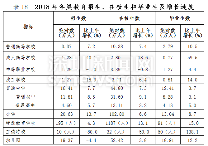 深圳新聞網(wǎng)2019年4月19日訊(記者 劉夢婷 通訊員 胡雪濤)4月19日,記者從深圳市統(tǒng)計(jì)局獲悉,深圳市2018國民經(jīng)濟(jì)與社會(huì)發(fā)展統(tǒng)計(jì)公報(bào)出爐:全市實(shí)現(xiàn)地區(qū)生產(chǎn)總值24221.98億元,比上年增長7.6%,常住人口達(dá)1302.66萬人。人均可支配收入57543.60元,居民人均消費(fèi)支出40535.02元。總體來看,2018年深圳經(jīng)濟(jì)運(yùn)行穩(wěn)健,主要經(jīng)濟(jì)指標(biāo)表現(xiàn)良好,高質(zhì)量發(fā)展扎實(shí)推進(jìn)。