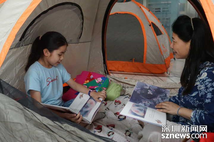 有的小朋友最期待的就是搭帳篷環(huán)節(jié),因為親手搭建一個自己的小窩感覺特別有趣。而有的小朋友最喜歡的是能夠在帳篷里和媽媽一起看新書。這些新書,就是主辦方深圳少年兒童圖書館送給小讀者的另一份閱讀好禮,館長宋衛(wèi)和小作家陳鵬宇、文字作家真真一起,親手給小讀者免費送上《蛇王》、《我們的一天》和《奇想文庫》等童書。