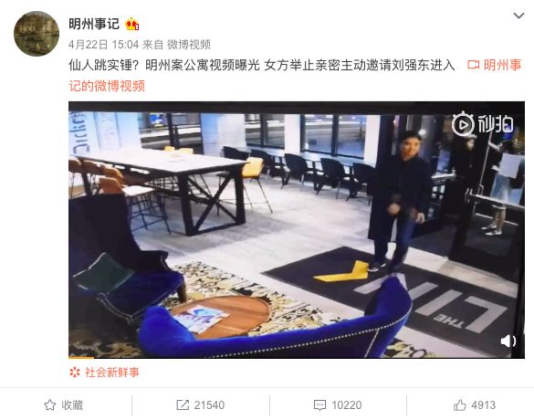 就在人們以為事件就此平息的時候,又爆出一系列和該案有關的料。首先是本案當事人LIUJINGYAO宣布起訴京東集團及劉強東。4月22日、23日微博上爆出監(jiān)控視頻以及劉強東美國律師和LIUJINGYAO之間電話談話的錄音。