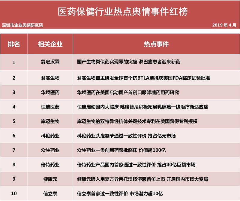 醫(yī)藥保健品行業(yè)熱點事件排行榜榜單說明:
