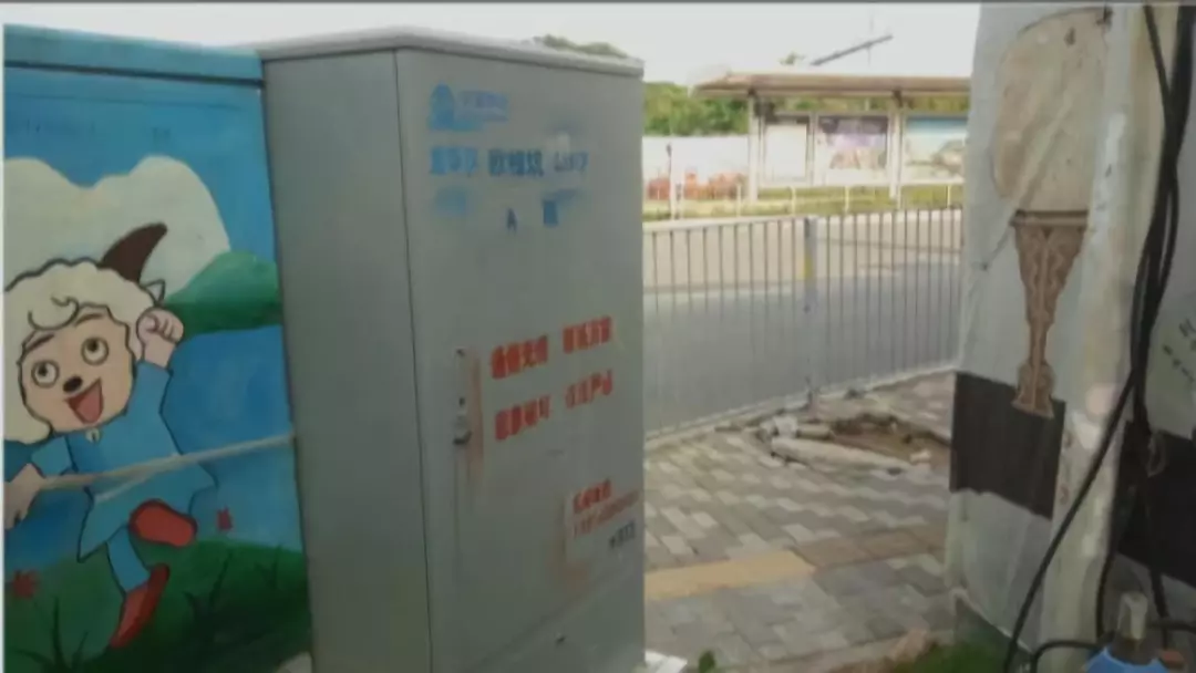 記者跟著劉先生來(lái)到了井蓋所在的觀瀾人民路和平安路交界處附近,想查出井蓋歸屬何方。劉先生發(fā)現(xiàn)離井蓋大概2米左右的地方有通信光纜箱,這會(huì)是線索嗎?