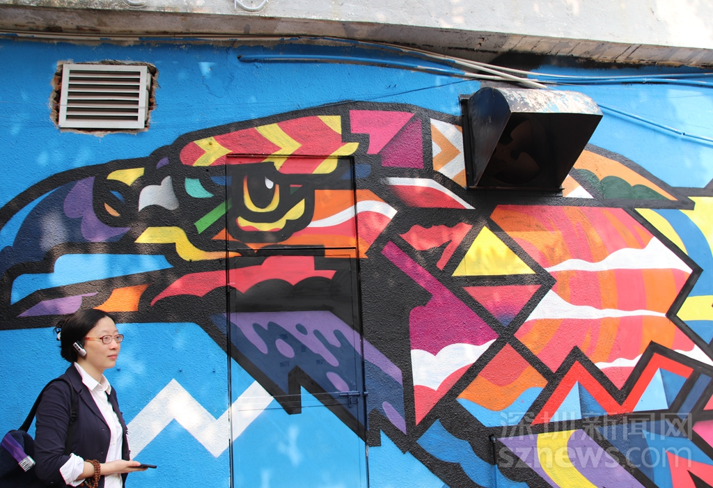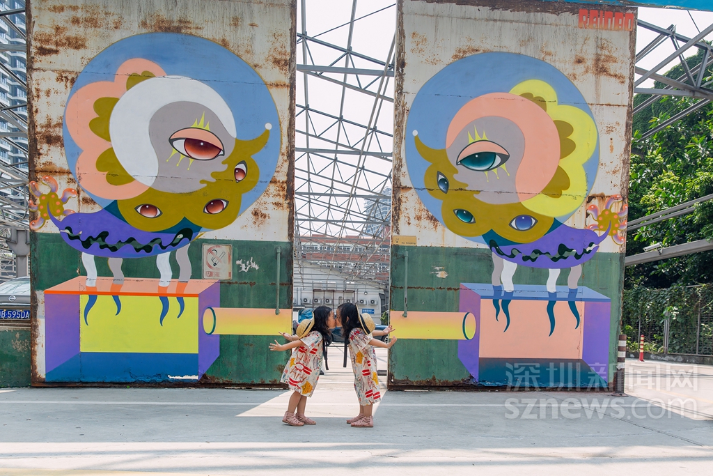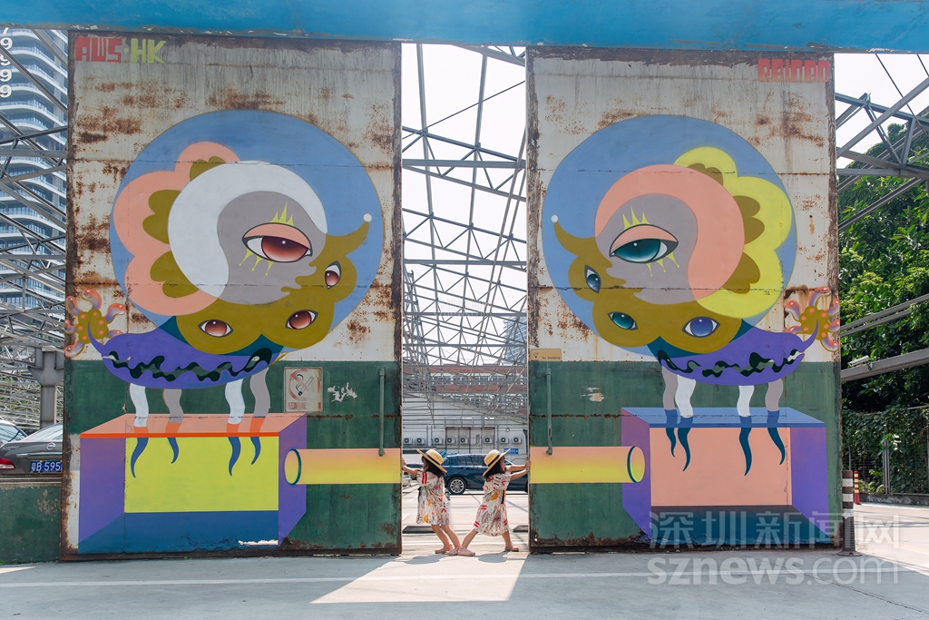 在城市公共空間中,涂鴉藝術(shù)不僅是一種重要的人文景觀,同時(shí)還能給人一種視覺(jué)享受,使單一的生活變得富有色彩。來(lái)自中國(guó)香港的全職藝術(shù)家彭怡擅長(zhǎng)用涂鴉進(jìn)行故事創(chuàng)作,帶來(lái)作品《雙觀》,以左右對(duì)稱相望的停車場(chǎng)守護(hù)神的形象感染車主與行人,傳達(dá)平穩(wěn)冷靜的力量。