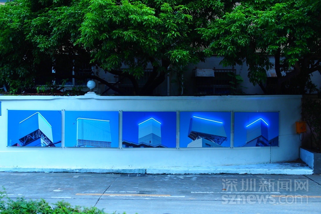 木村華子作品《[ ]廣告牌》給照片里的建筑加上了讓人心情平靜的藍(lán)色霓虹燈