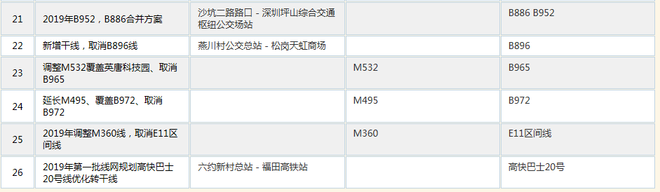 深圳新聞網(wǎng)5月20日訊(記者 涂勝)5月20日下午,深圳市交通運(yùn)輸局發(fā)布關(guān)于征求《2019年第一批公共汽車線路規(guī)劃方案》(征求意見稿)意見的通告。記者從規(guī)劃方案中的獲悉,本次線路公共汽車線路規(guī)劃方案以完成各區(qū)骨干網(wǎng)搭建及區(qū)域間快線、骨干線網(wǎng)銜接為工作重點(diǎn),共包含線路方案63個,涉及線路79條(其中,新增5條,調(diào)整24條,合并、取消50條,運(yùn)力從原特區(qū)內(nèi)向原特區(qū)外轉(zhuǎn)移58臺)。