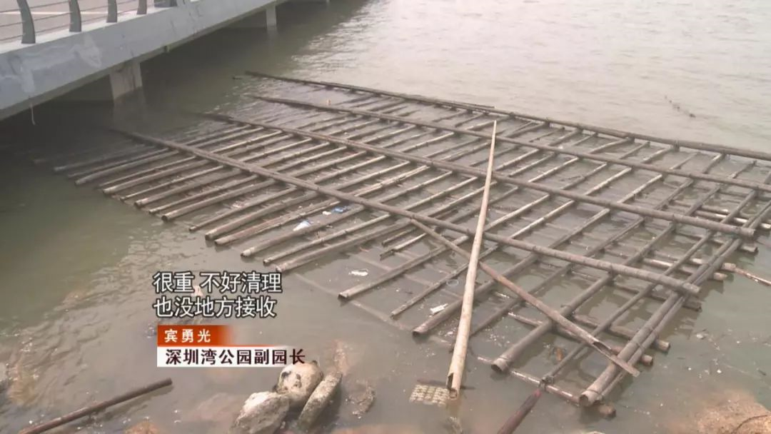 《第一現(xiàn)場(chǎng)》記者立馬跟進(jìn),找到了公園管理方。管理方表示,其實(shí)我們看到的才只是一小處,深圳灣沿岸十幾公里的范圍,每天都有不少竹排飄過來,不!過!?。?/span>這些竹排卻不!是!源!自!深!圳!