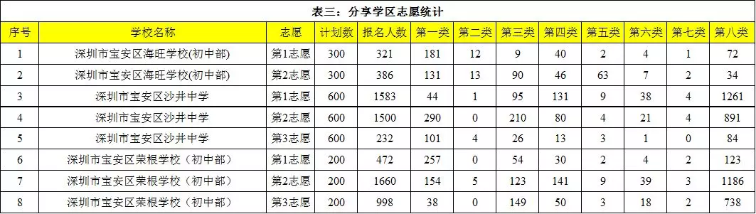表三:分享學(xué)區(qū)志愿統(tǒng)計(jì)