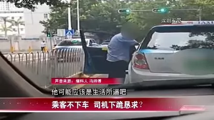 行駛到一個(gè)紅綠燈路口時(shí),的哥突然停車并開門跪下,對(duì)著該名乘客說:“我給你跪下,我不走了,我認(rèn)輸”
