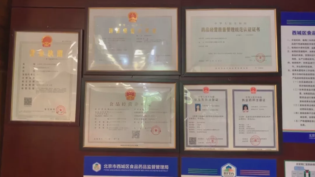 并且所有授權(quán)門店都會公示執(zhí)業(yè)醫(yī)師、藥師注冊證,食品及藥品經(jīng)營許可證,藥品經(jīng)營質(zhì)量管理規(guī)范認證證書等一系列相關(guān)證照。