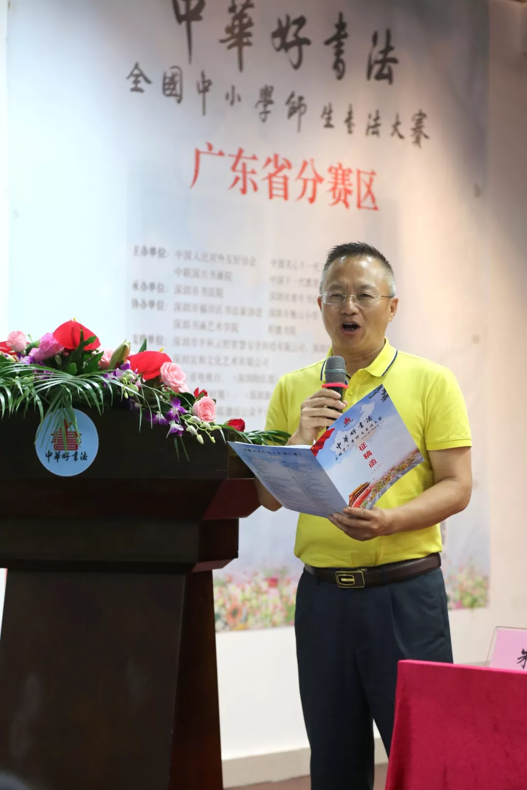 深圳市老干局副局長(zhǎng)、深圳市關(guān)心一下工作委員會(huì)辦公室領(lǐng)導(dǎo)王小蓉女士宣布“中華好書法”全國中小學(xué)師生書法大賽廣東省分賽區(qū)比賽正式啟動(dòng)