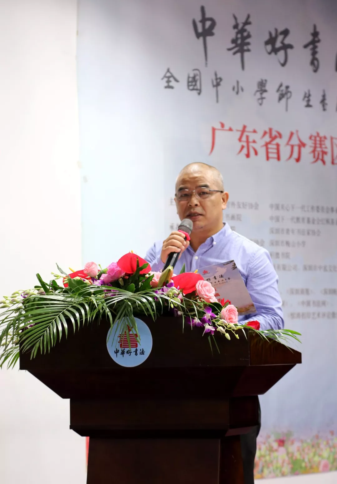 原深圳市文聯(lián)副主席、“中華好書法”全國中小學(xué)師生書法大賽書法大賽組委會(huì)副主任兼廣東省分賽區(qū)組委會(huì)主任顧煥金,在啟動(dòng)儀式上他從政治意義,文化意義及時(shí)代意義三個(gè)方面,闡述了這次大賽的重要性、必要性。并向全省中小學(xué)師生發(fā)出了邀請(qǐng),他希望廣大師生積極參與本次大賽,以高水平的書法作品展示廣東中小學(xué)師生的書法藝術(shù)水平,并通過本次大賽,進(jìn)一步弘揚(yáng)祖國優(yōu)秀傳統(tǒng)文化,助力全省書法教師隊(duì)伍建設(shè),推動(dòng)中小學(xué)書法教育的健康發(fā)展,促進(jìn)優(yōu)秀傳統(tǒng)書法及書法精神的滲透與傳播。