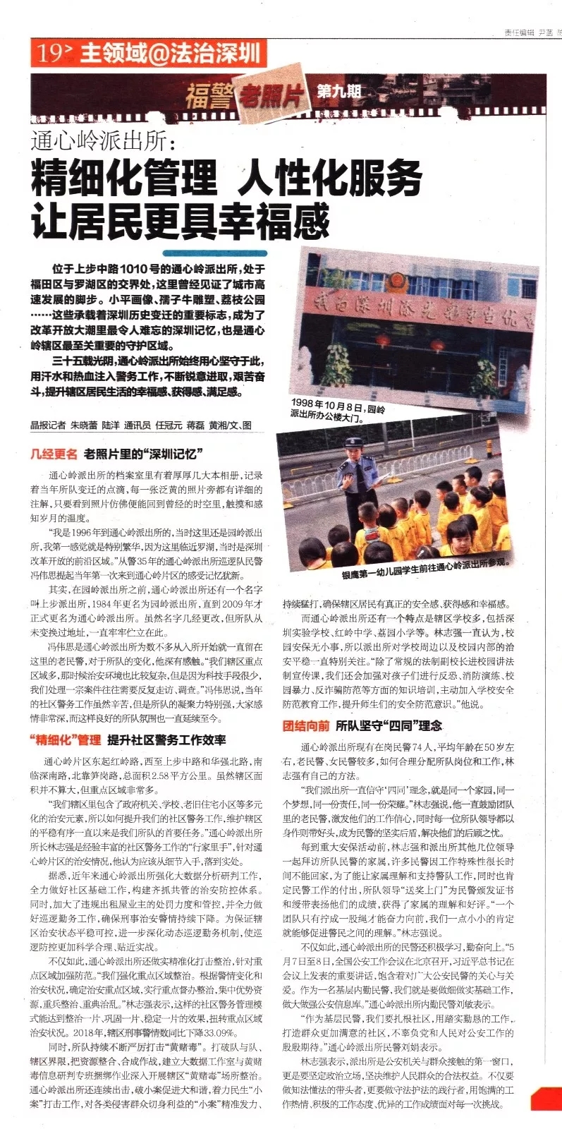 “我是1996年到通心嶺派出所的,當(dāng)時(shí)這里還是園嶺派出所,我第一感覺就是特別繁華,因?yàn)檫@里臨近羅湖,當(dāng)時(shí)是深圳改革開放的前沿區(qū)域?!睆木?5年的通心嶺派出所巡邏隊(duì)民警馮偉思提起當(dāng)年第一次來到通心嶺片區(qū)的感受記憶猶新。