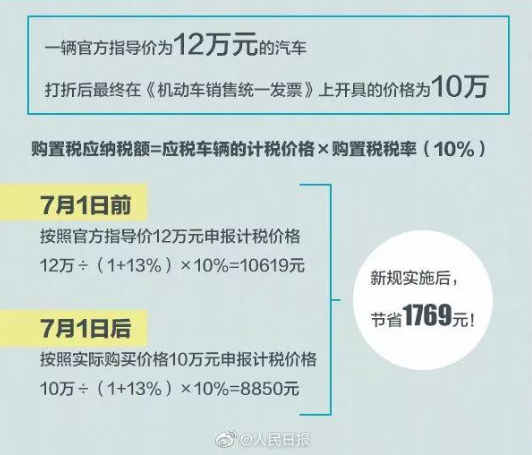 7月1日起,消費(fèi)者購買車輛應(yīng)扣稅款將取決于實際支付金額