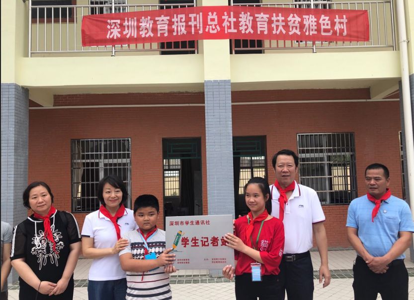除舉行“報(bào)刊傳遞夢想,愛心點(diǎn)燃希望”報(bào)刊圖書捐贈活動外,本次教育扶貧還有一個(gè)重要的任務(wù)——深圳學(xué)通社學(xué)生記者站在頌平小學(xué)正式掛牌。