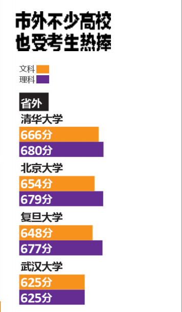 需要特別指出的是,去年廣東省合并一二本批次,在本科批次錄取時,率先錄取高分優(yōu)先投檔線(簡稱“高優(yōu)線”)上的考生。根據(jù)最終數(shù)據(jù)顯示,深圳6所本科高校投檔線全部在高優(yōu)線以上。