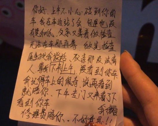 王女士發(fā)現(xiàn)自家車門處被撞了一個坑,