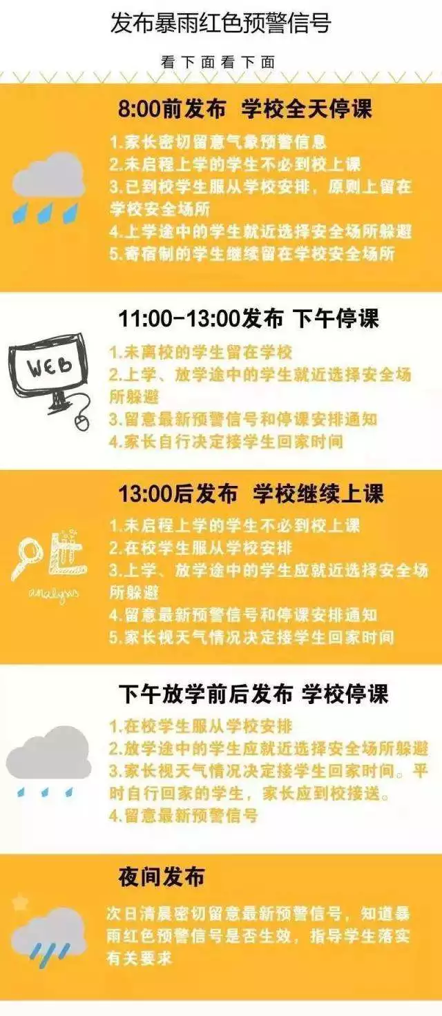 所以,暴雨紅色預(yù)警的停課措施學(xué)起來▼