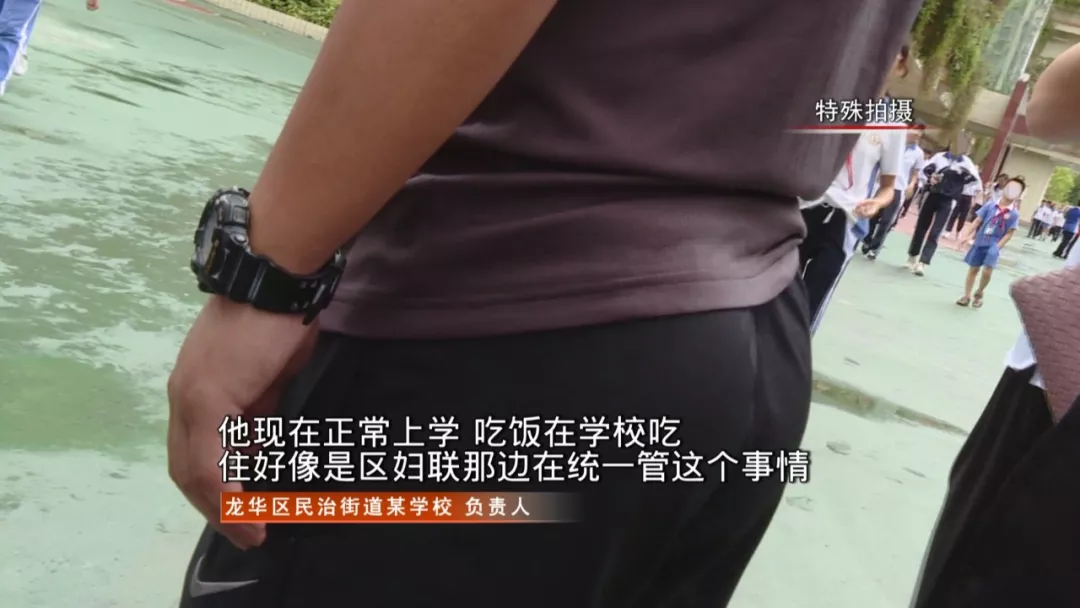 隨后,記者來到李天所在的學校。校方稱,孩子目前在學校吃飯,住宿方面由婦聯臨時接管!