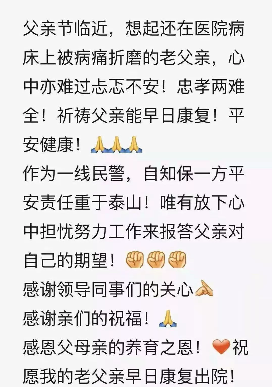 ▲華富派出所民警楊建軍朋友圈