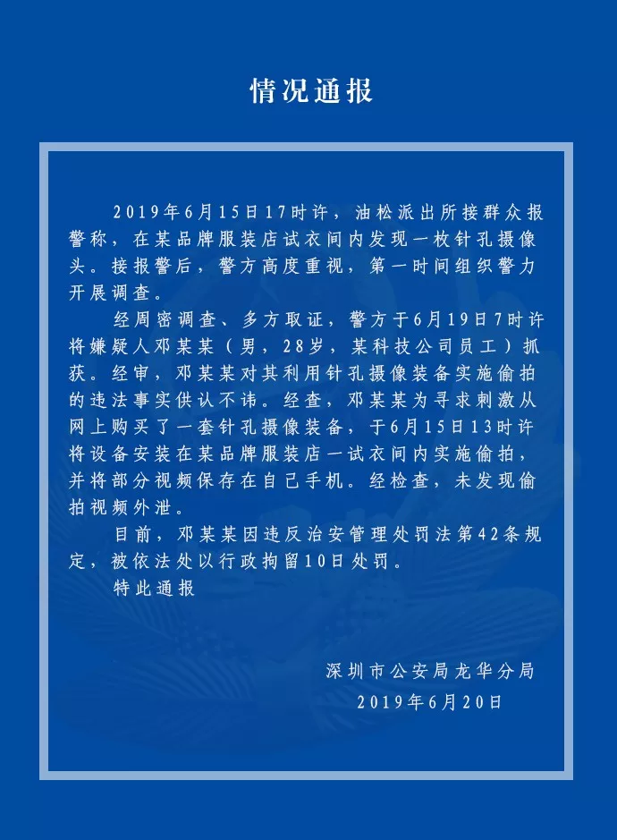 相關(guān)報(bào)道:最新!深圳優(yōu)衣庫(kù)“偷拍門”:人抓到了!
