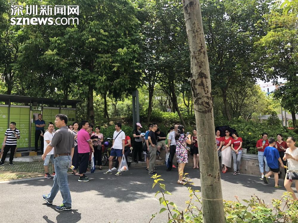 10:35時,2019深圳中考第一科語文即將結束考試,家長們在等候。