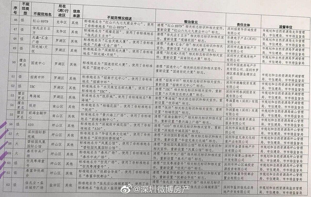 日前,在深圳市政府指導(dǎo)下,市規(guī)劃和自然資源局會(huì)同市公安局、市住房和建設(shè)局、市交通運(yùn)輸局、市市場(chǎng)監(jiān)督管理局、市城市管理和綜合執(zhí)法局成立了市清理整治不規(guī)范地名工作領(lǐng)導(dǎo)小組(以下簡(jiǎn)稱“領(lǐng)導(dǎo)小組”),同時(shí)制定了《深圳市進(jìn)一步清理整治不規(guī)范地名工作方案》。