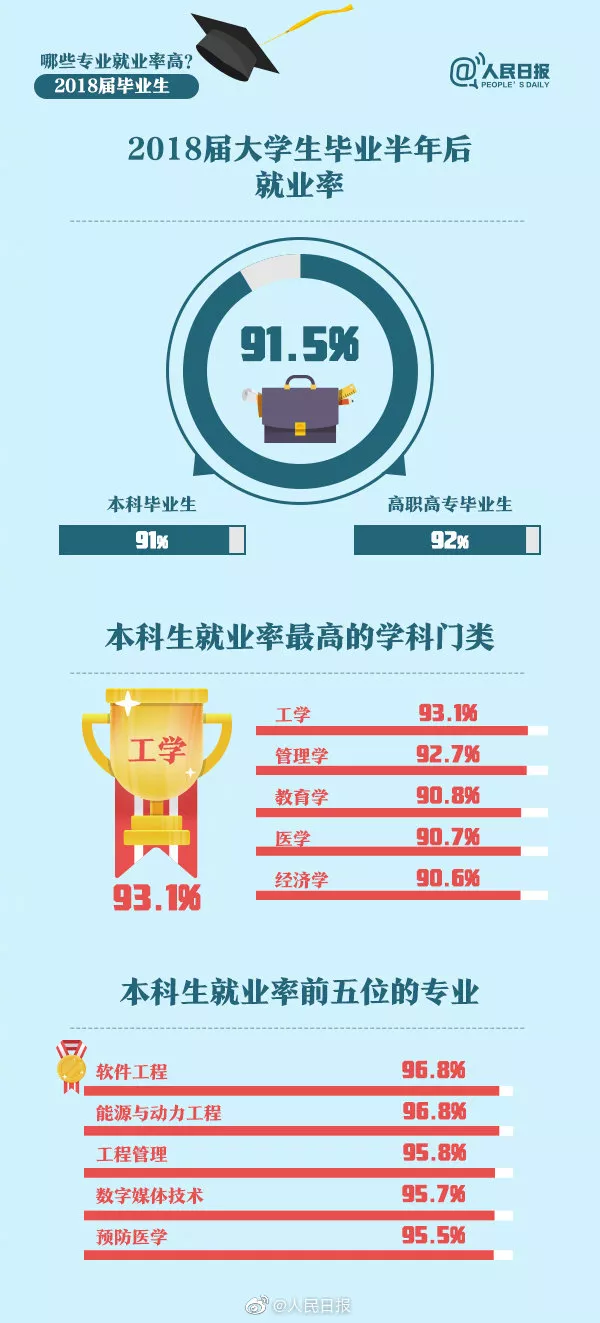 2018屆大學(xué)畢業(yè)生就業(yè)率91.5%,