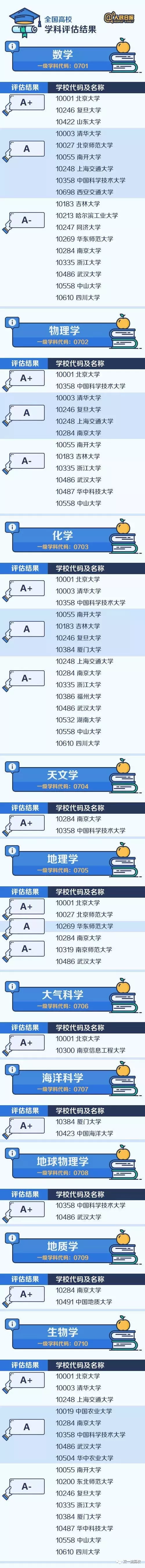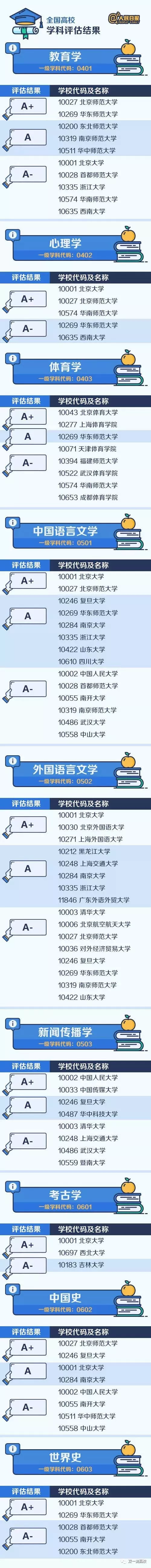 人民日報微博專門整理匯總了A類學(xué)科(包括A+、A、A-三檔),來看看這些中國最頂尖的學(xué)科名單都分布在哪些大學(xué)?