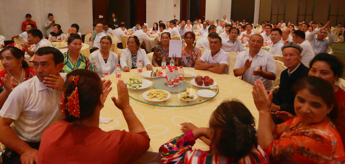 聯誼會表演精彩紛呈,合唱《我和我的祖國》以振奮的旋律、嘹亮的歌聲、滿腔的熱情帶領全體黨員回顧了我們黨走過的光輝歷程,抒發(fā)我們對黨的無限熱愛;在熱烈的氣氛下,深圳援疆前方指揮部總指揮楊春生帶領參加活動的全體黨員在黨旗下一起重溫入黨誓詞,表達了為黨的事業(yè)奮斗畢生的決心;民族舞蹈《塔吉克婚禮》、《有那么一個地方》充滿陽光和歡快;援疆警察代表張凱同志和援疆教師代表孫運輝老師演唱的《不忘初心》鏗鏘有力;全體人員合唱的一首《歌唱祖國》將會場氣氛推向高潮,各族結對親戚們聆聽著熱情的歌聲,欣賞著歡樂的舞蹈,臉上都洋溢著愉快的笑容?;顒幼詈螅w人員歡快的跳起了麥西來普,現場一派歡樂祥和,展現了各族群眾團結在一起熱愛祖國、熱愛黨、熱愛家鄉(xiāng)的情感信念。