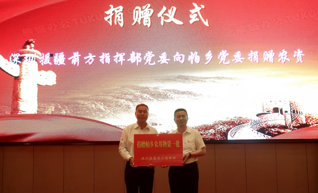 深圳援疆前方指揮部副總指揮洪雋代表深圳援疆前方指揮部向帕鄉(xiāng)黨委捐贈農用物資