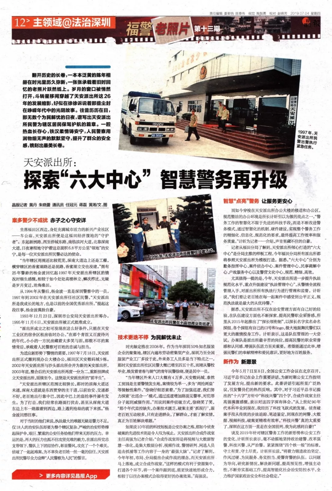新作為新愿景今年5月7日至8日,全國(guó)公安工作會(huì)議在北京召開,習(xí)近平總書記在會(huì)上作重要講話,為新時(shí)期公安工作指明了發(fā)展方向,提出新的要求。此番講話引起所里廣泛熱議,引發(fā)警員們的熱烈反響。其中,對(duì)于習(xí)近平總書記提出的“十六字”方針中“科技興警”四個(gè)字,合成作戰(zhàn)室主任高強(qiáng)滿腹感慨,表示對(duì)這四字深有體會(huì)?!皬纳鲜兰o(jì)90年代本科畢業(yè)到現(xiàn)在,我經(jīng)歷了科技飛躍式的發(fā)展。偵查破案手段從傳統(tǒng)的步法追蹤、筆跡鑒定,到現(xiàn)在的網(wǎng)警、大數(shù)據(jù)、視頻科技,破案更精準(zhǔn)有效率,‘科技興警’真的太重要了,深圳在這方面一直走在全國(guó)前列,我為此感到自豪!”