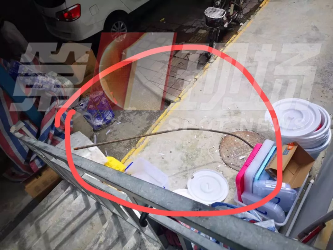 ▲高空墜落的鋼筋,長(zhǎng)約一米