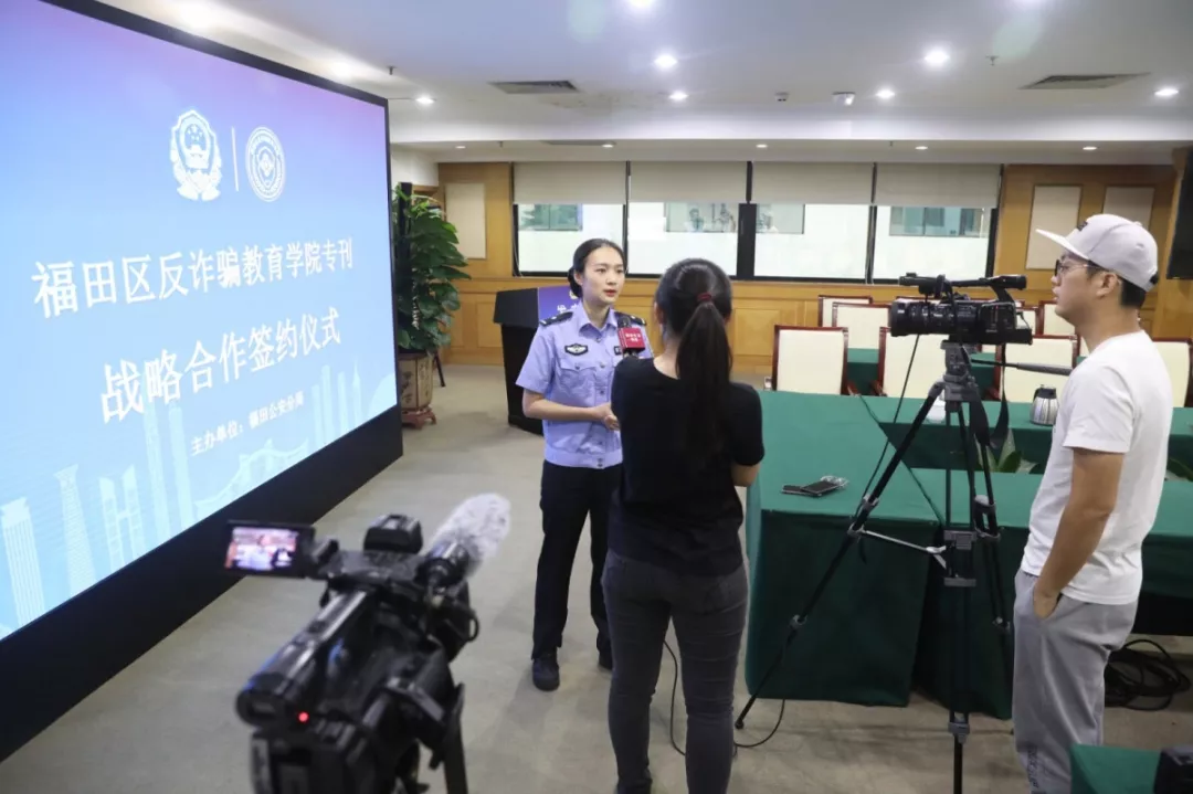 活動現場,福田分局分別與福田區(qū)委政法委、蓮花街道辦、北大深圳醫(yī)院、深圳外國語學校、中國郵政儲蓄銀行、聯(lián)想有限公司(深圳)、平安大廈物業(yè)、馬成時代廣場、卓越世紀廣場、山姆會員店、梅林農批市場、順豐快遞共12家單位和企業(yè)簽訂了《福田反詐騙教育學院??瘧?zhàn)略合作協(xié)議》。